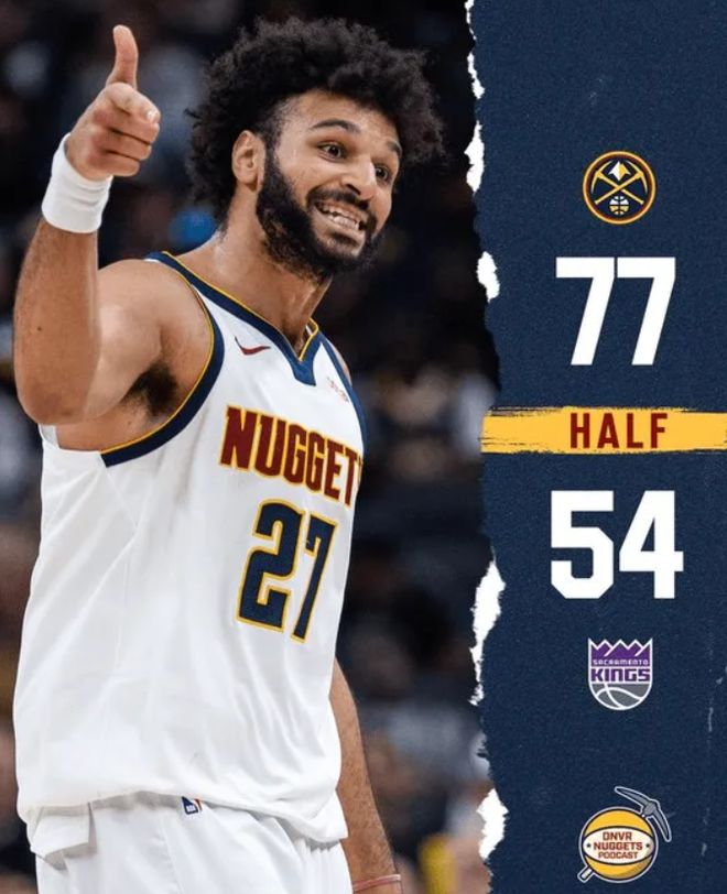 值得一提的是,掘金半场得到77分,创本赛季上半场得分新高纪录。
