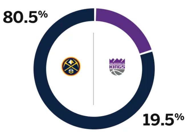 赛前,美媒ESPN对本场比赛进行了胜率预测,掘金队胜率高达80.5%,国王胜率则仅有19.5%,差距非常明显。